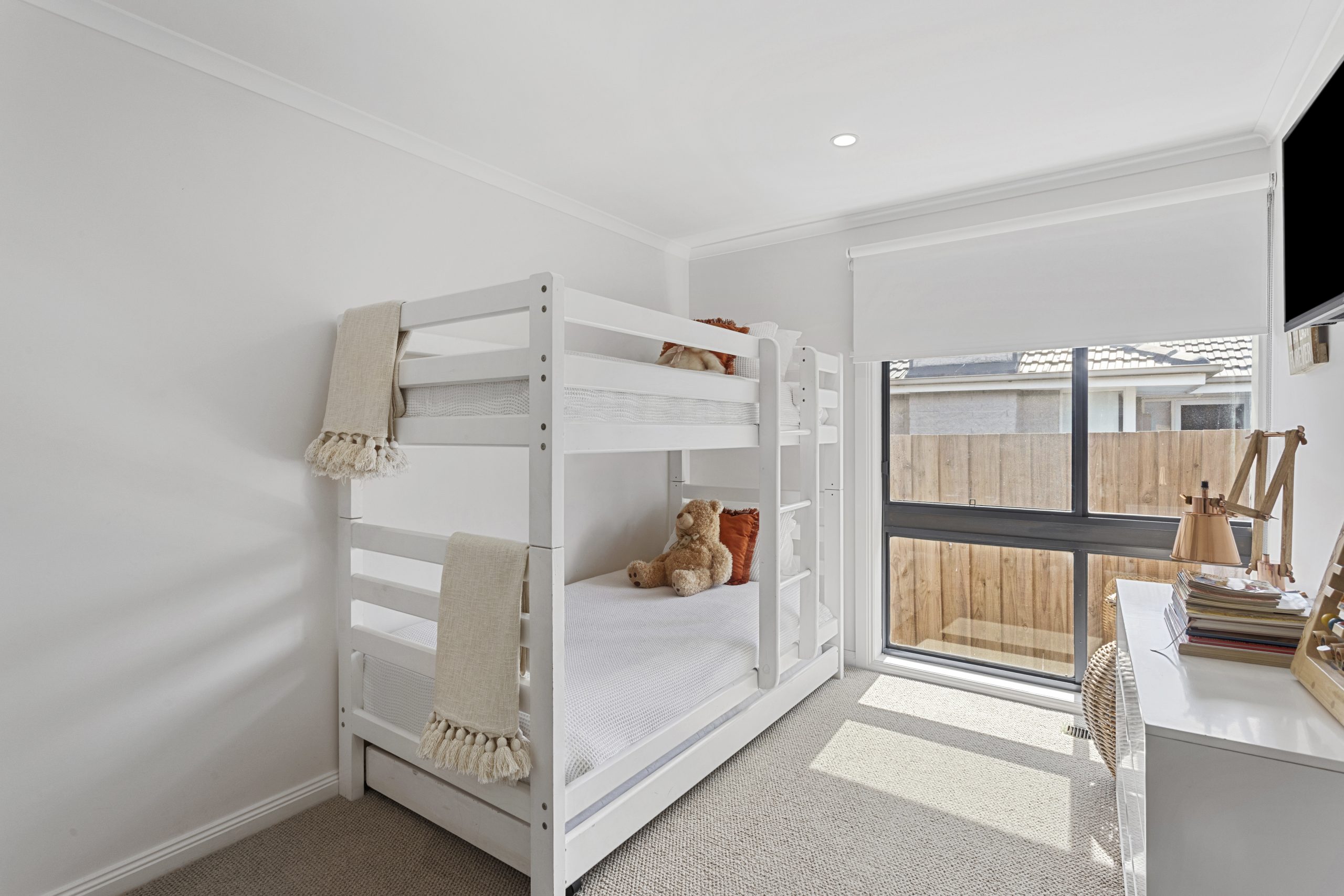 Step inside and you’ll immediately feel the warmth and style, with a cosy living area complemented by classic plantation shutters. The home offers three generous bedrooms and two stunning bathrooms, finished with floor-to-ceiling tiles and modern accents for a sleek, contemporary look.