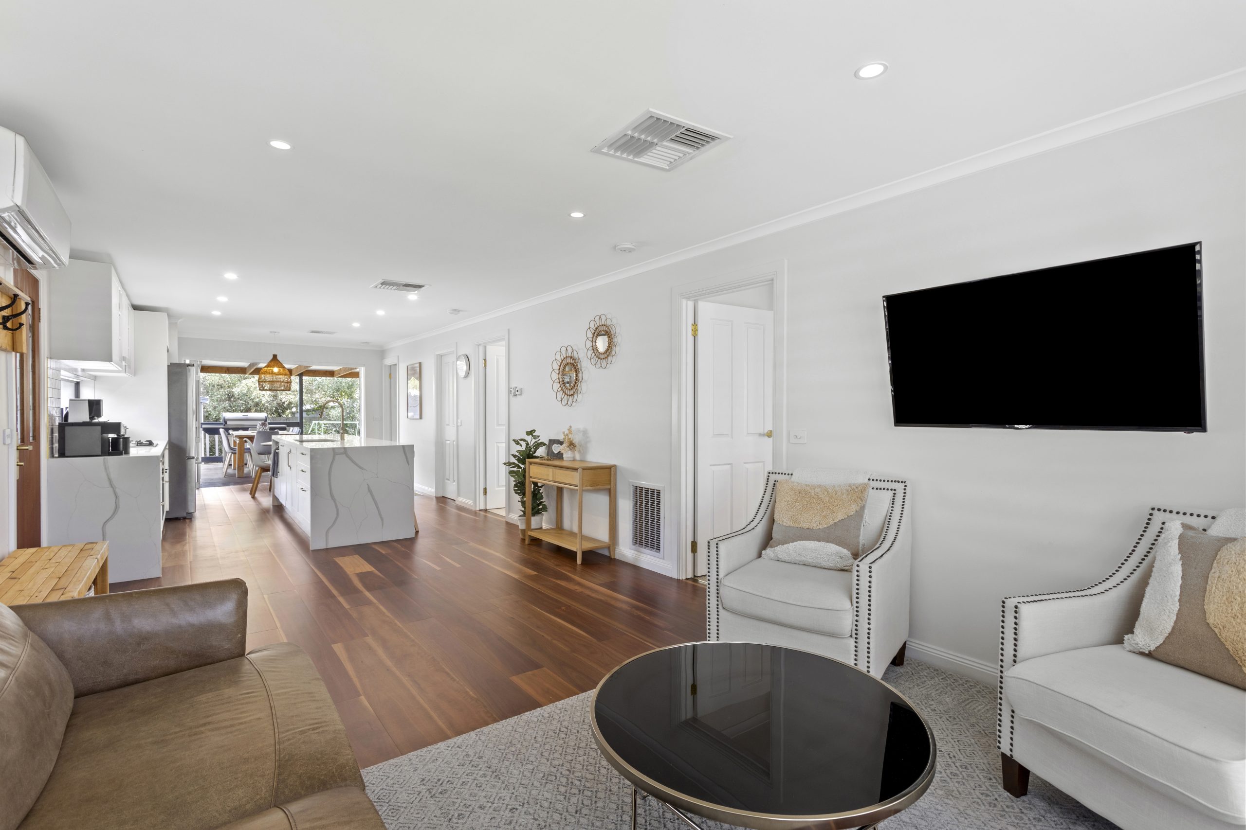 Completing the package are engineered high-quality floors, gas ducted heating, evaporative cooling, and a split system air conditioner for comfort in every season.